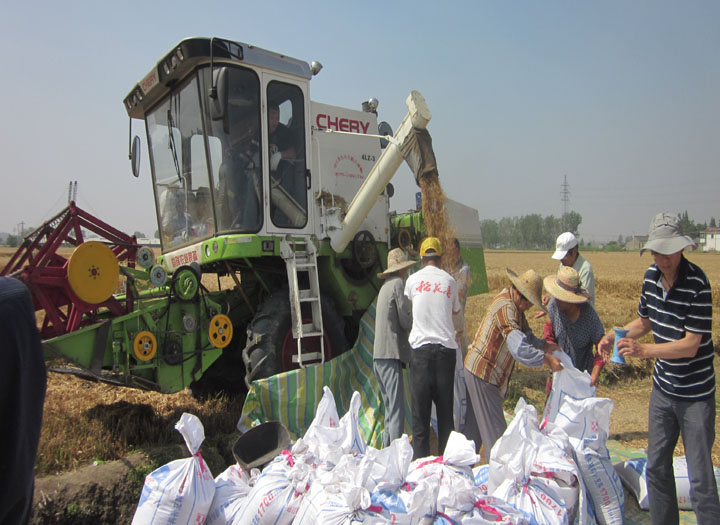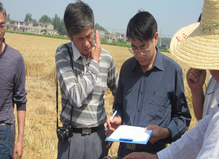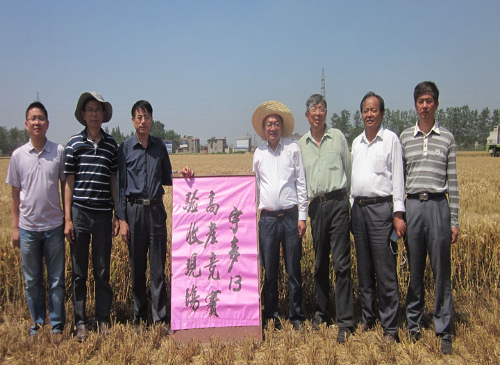 6月5日上午,由江蘇省作栽站、江蘇省農(nóng)科院、揚州大學、揚州市農(nóng)委、高郵市農(nóng)委等單位組成的專家組對位于高郵三垛鎮(zhèn)春生村的寧麥13高產(chǎn)增效創(chuàng)建萬畝示范田開始進行實產(chǎn)驗收。蔚藍的天空下,微風輕拂,金色麥田里麥浪歡快起舞,散發(fā)出陣陣成熟的香味,等待著最后收獲時刻。伴隨著收割機的轟鳴聲,專家組經(jīng)過現(xiàn)場丈量實割面積、清理收割機械、校對磅秤稱重、測定水分雜質(zhì)、折水分、雜質(zhì)和袋皮重量等一系列嚴格程序,3.04畝寧麥13收獲稱重為2107.3公斤,每畝單產(chǎn)為693.2公斤,刷新了江蘇省小麥單產(chǎn)最高記錄。 專家組一致表示,“寧麥13”超高產(chǎn)攻關成功,刷新我省小麥最高產(chǎn)記錄,得益于兩大條件:一是品種好,“寧麥13”是一個廣適高產(chǎn)品種;二是管理到位,良種良法相配套。 “寧麥13”是江蘇農(nóng)科院選育、江蘇明天種業(yè)科技有限公司獨家實施許可權的優(yōu)質(zhì)、高產(chǎn)、多抗小麥品種。2008年被評為蘇中“麥王”,連續(xù)多年高產(chǎn)創(chuàng)建示范紅麥區(qū)單產(chǎn)第一。 本年度“寧麥13”在各地種植表現(xiàn)長勢喜人,捷報頻傳。3日下午海安高產(chǎn)驗收實收產(chǎn)量為604公斤/畝,姜堰高產(chǎn)驗收產(chǎn)量實收為605公斤/畝。這些充分表現(xiàn)了該品種抗逆普適、量質(zhì)協(xié)調(diào)、高產(chǎn)穩(wěn)產(chǎn),產(chǎn)量三要素非常協(xié)調(diào)。“寧麥13”就是這樣一個真正敢于在秤桿子底下見高低的好品種!這次新記錄的創(chuàng)造,再次捍衛(wèi)了麥王傳奇! 多家電視臺和雜志媒體對本次活動進行了跟蹤報道。